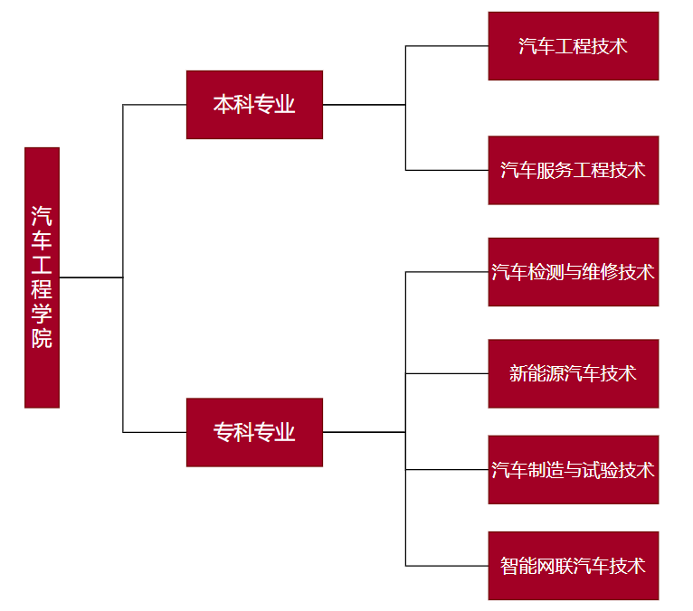 2003网站太阳集团开设有汽车工程技术和汽车服务工程技术两个本科专业,汽车检测与维修技术、新能源汽车技术、智能网联汽车技术、汽车制造与试验技术四个专科专业。学院被评定为国家级高技能人才培训基地、河南省民办普通高等学校品牌专业建设点、河南省高等职业教育示范性实训基地、省级技能人才实训鉴定基地、全民振兴工程高技能人才培养示范性基地。